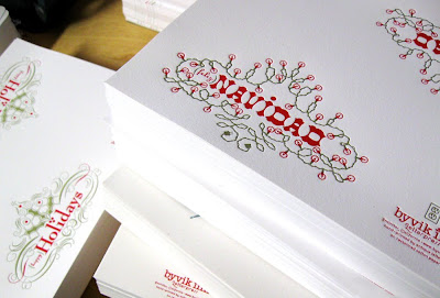 We have been printing, scoring and packaging holiday cards like crazy these last few weeks. It’s always so hard to decide how many to print of each. Last year we ended up re-printing some designs twice and others we didn’t get around to. Now that our motor is working smoothly, it’s a bit easier, but it still feels like a guessing game. Next year, thanks to our accountant (sister) and her Quickbook skills, we may be able to calculate our inventory based on actual data. In the meantime we’ll print what we can and hope for the best. Keep your eye out for these designs and more to hit our online shops in the next week. If you are interested in any of our cards with a personalized message letterpress printed inside, get your requests in ASAP.